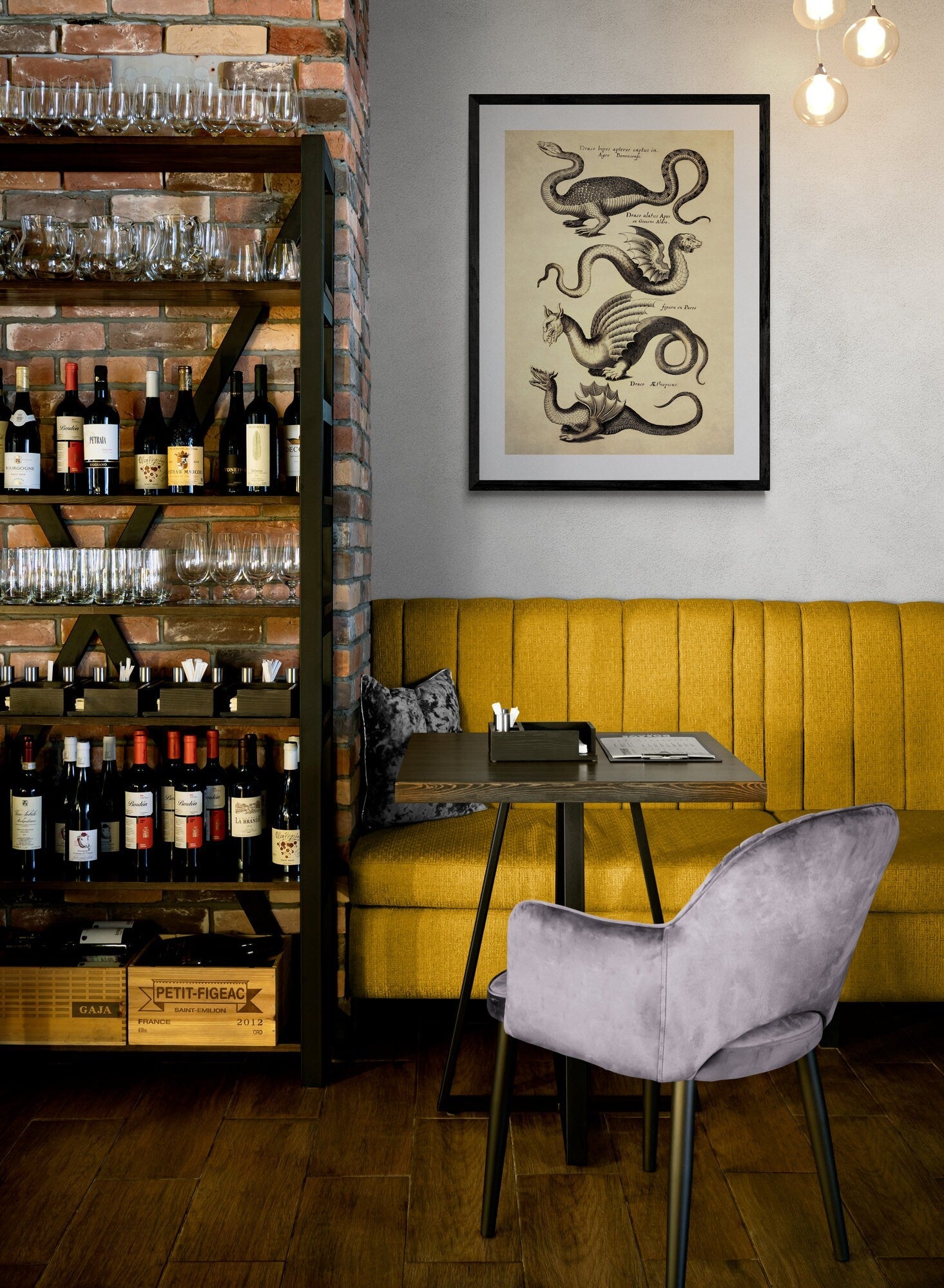 This vintage reproduction of Dragons Print Dated 1650 is a faithful representation of an original 19th-century engraving ¡ª perfect for classic interiors and collectors of antique-style wall art.