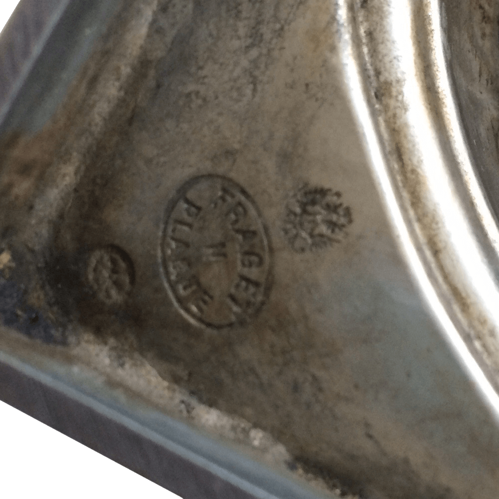 Check the marks.?Both silver-plate and sterling-silver pieces will bear multiple marks of some kind. American sterling is typically marked with ¡°925,¡± meaning the piece is made of 92.5% silver and 7.5% of another type of metal. English sterling traditionally features a lion marking along with several other marks that indicate the city of origin, the monarch in power at the time of its creation, and the year it was made.